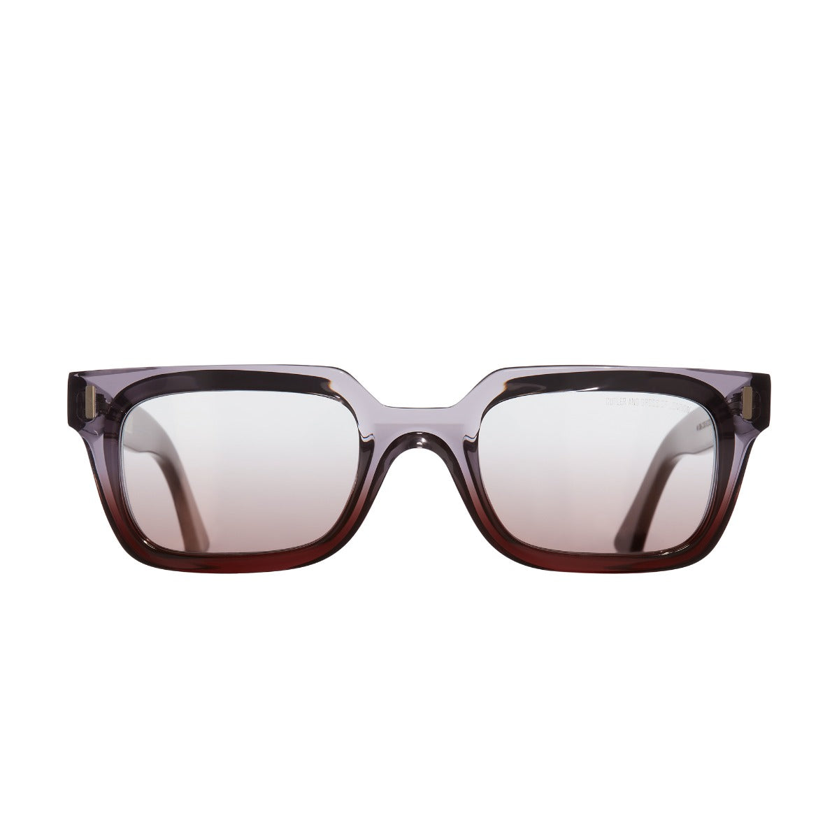 Rectangle design sunglass frame with interior 'televisioni' milling from 9mm sheet acetate  milled from behind for comfort. Flat bridge a new vertical frontal pin and pinless temples.