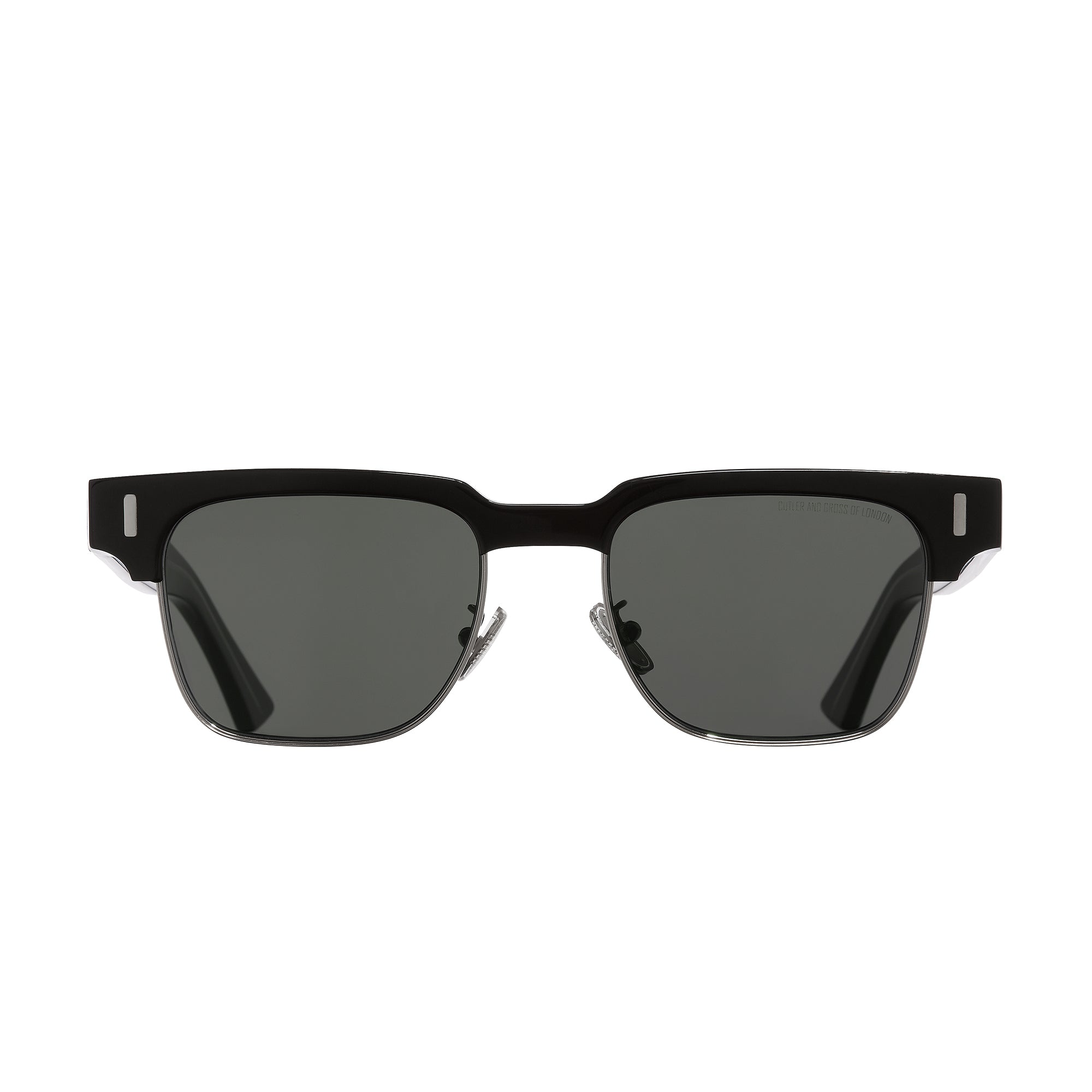 A modern take on a 50's inspired bold square contoured frame with a 7mm thick milled acetate top and metal rims. A distinctive masculine look  distilled and re-engineered using cutting edge techniques and materials. Sunglass lenses have custom rear AR coating and hyrdrophobic and oleophobic treatment.