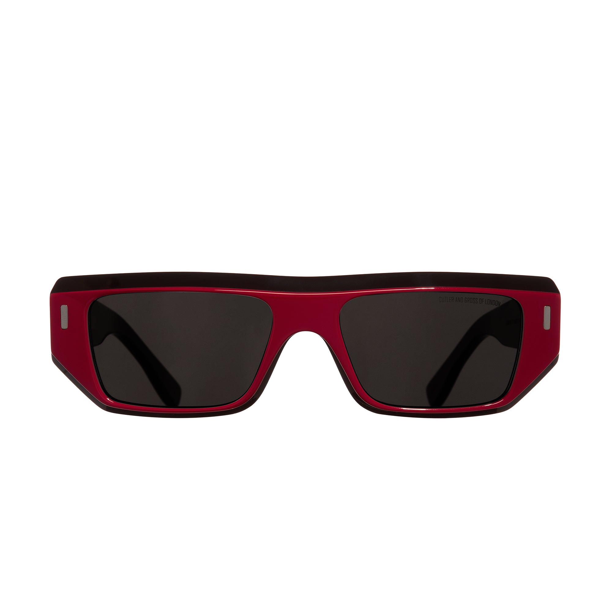 A new generation slice frame  with a striking regressive matte milled browline and wide temples. Polished acetate primary frontal with matte acetate base and temples. Vertical flush pins.